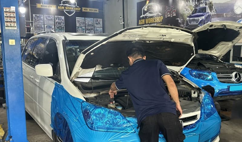 Kiểm tra tình trạng bật điều hòa xe bị ì máy tại AGM Workshop